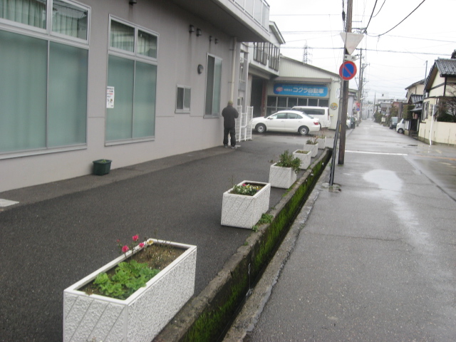 私の車の駐車場から城北病院や城北診療所に行き帰り通う道路は、城北病院北病棟・リハビリ室の横の道路です。そこにプランタンがおかれているのですけれども、この寒いのにバラが咲いています。お世話をしている人に会ったので、聞いてみましたところ冬バラという種類なのだそうです。