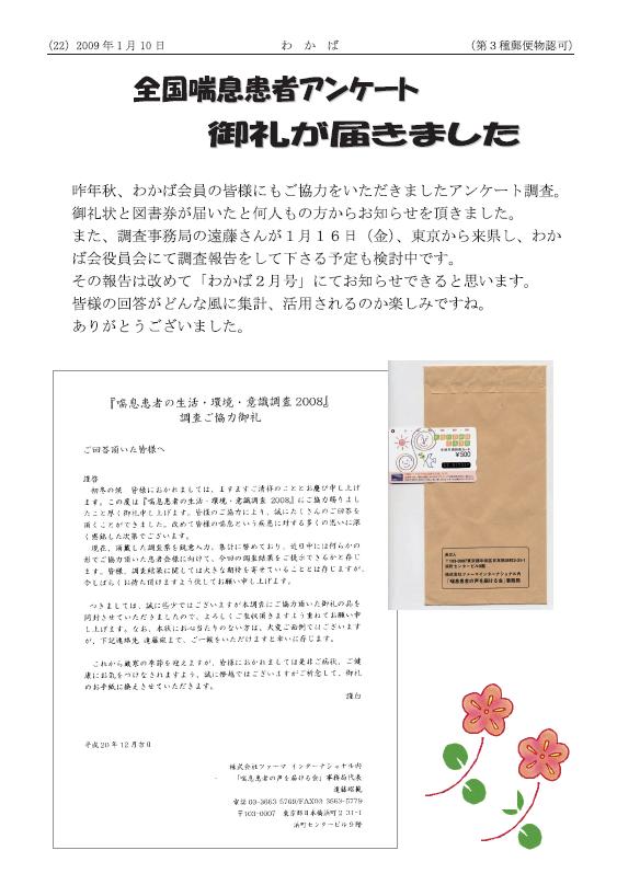 わかば1月号には「喘息患者の声を届ける会」のアンケートに協力してくれた方々に、このようなお礼の手紙と図書カードが贈られたということを掲載いたしました。