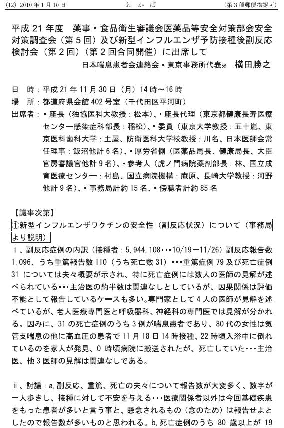 アズマネックスの紹介15/わかば1月号/合同出版祝賀会出席報告 8 アズマネックスの紹介15 相互作用と併用注意について記載されております。 わかば1月号12 厚生労働省の召集で開催された「新型インフルエンザ副反応検討会議」に出席された、日本喘息患者会連絡会東京事務所代表・横田さんの参加報告です。 合同出版祝賀会出席報告 9 珍しいタイの楽器と歌[:音符:]が、タイ人の音楽家によって演奏され、披露されました。 FacebookTwitterGoogle+email By 清水 巍 | 2010年2月24日 | 医療 | ← アズマネックスの紹介14/わかば1月号11/合同出版祝賀会出席報告 8 アズマネックスの紹介16/わかば1月号13/合同出版祝賀会出席報告 9/新たな相互リンク →