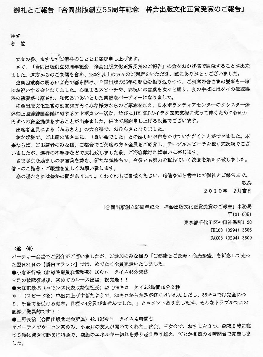 出席者に対するお礼のお便りが後日届きました。それを掲載して報告を終わります。わかば3月号には、B5・2ページにわたって、写真を2枚選びこれまでの報告を要約して、掲載します。