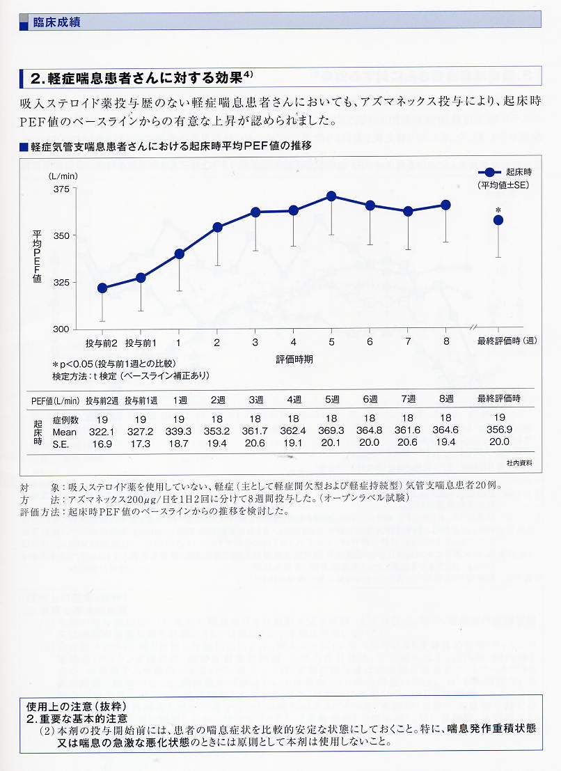 軽症喘息の方々に対する効果です。なかなか良いですね。
