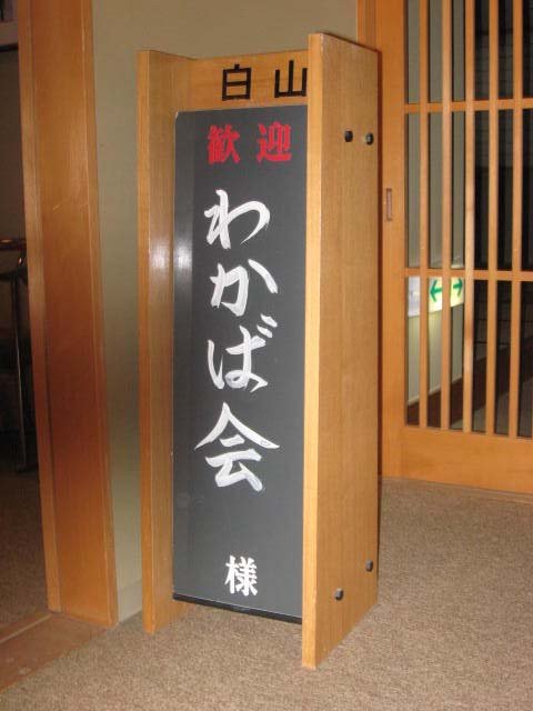 総会と講座の会場となった入口の標識です。白山の間で行われました。