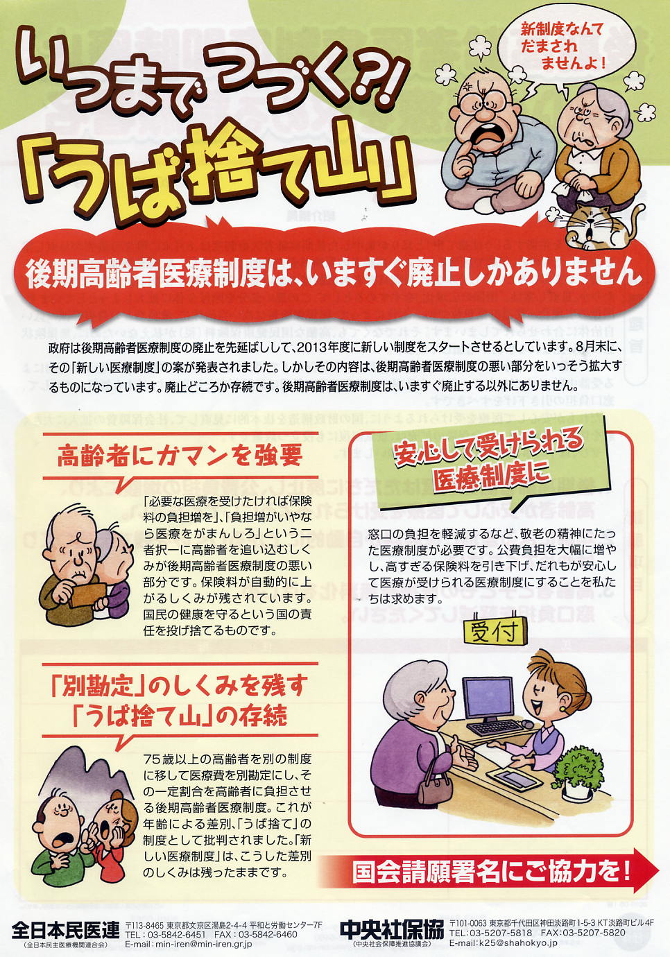 全日本民医連から、後期高齢者医療制度の新しいチラシが届きました。私が貰っているだけではもったいないので、全日本民医連の許可を得て、皆様にもご紹介します。