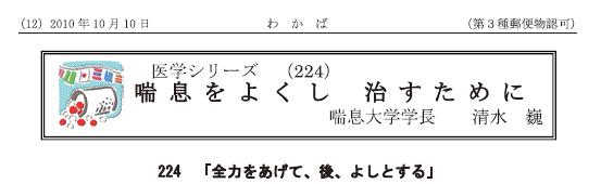 吸入療法ガイド4/わかば10月号12頁 吸入療法ガイド4 成人喘息、小児喘息の治療目標が表示されております。皆様はそれを達成しているでしょうか。 わかば10月号12頁 私が担当しているページです。皆様に良く読まれている箇所の一つです。 FacebookTwitterGoogle+email By 清水 巍 | 2010年11月14日 | 医療 | ← 吸入療法ガイド3/わかば10月号11頁 吸入療法ガイド5/わかば10月号13頁/本日朝からは通常勤務 →