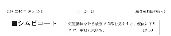 新しく登場したシムビコートについて、中枢から末梢までの気道抵抗改善したというデータのグラフを紹介しました。私のコメントのみを皆様にお見せしました。実際のグラフを入手したい方は、わかば10月号をご覧下さい。