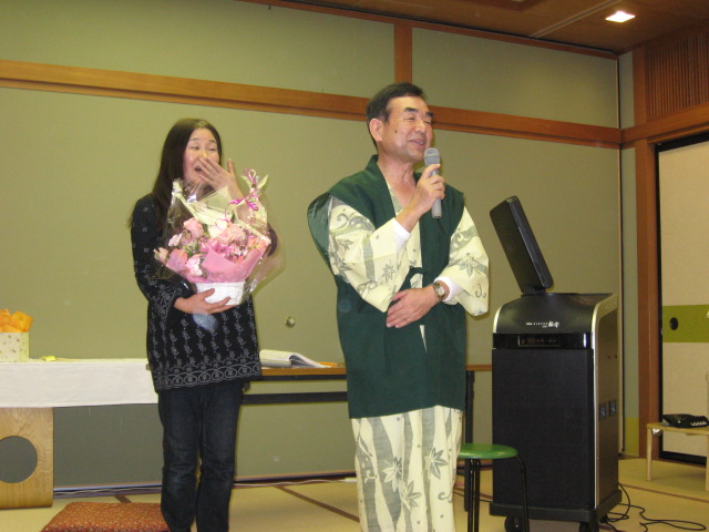 長い間、寺井病院の喘息外来を支えてくださったAさんが、定年退職となりました。感謝の意を込めて、私が思い出や功績を語り、花束[:花:][:チューリップ:]を贈って讃えました。Aさんが右側の写真で、「みなさんとは別れがたい。有り難うございました」と別れと感謝のあいさつをされました。
