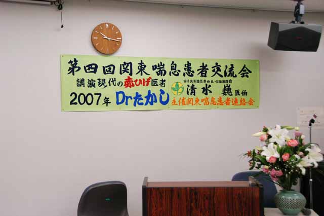 いよいよ第4回関東喘息患者交流会の写真のアップです。1枚目が、会場内の正面に貼られた看板です。