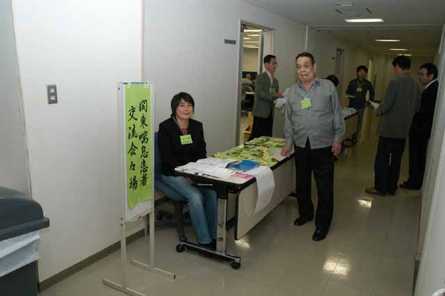 2枚目の写真は受付の女性(ご主人とともに参加されました)、立っていらっしゃるのは横浜の池田さんです。この方が、会場内の看板や参加者のネームプレートを書かれました。地元の世話人です。